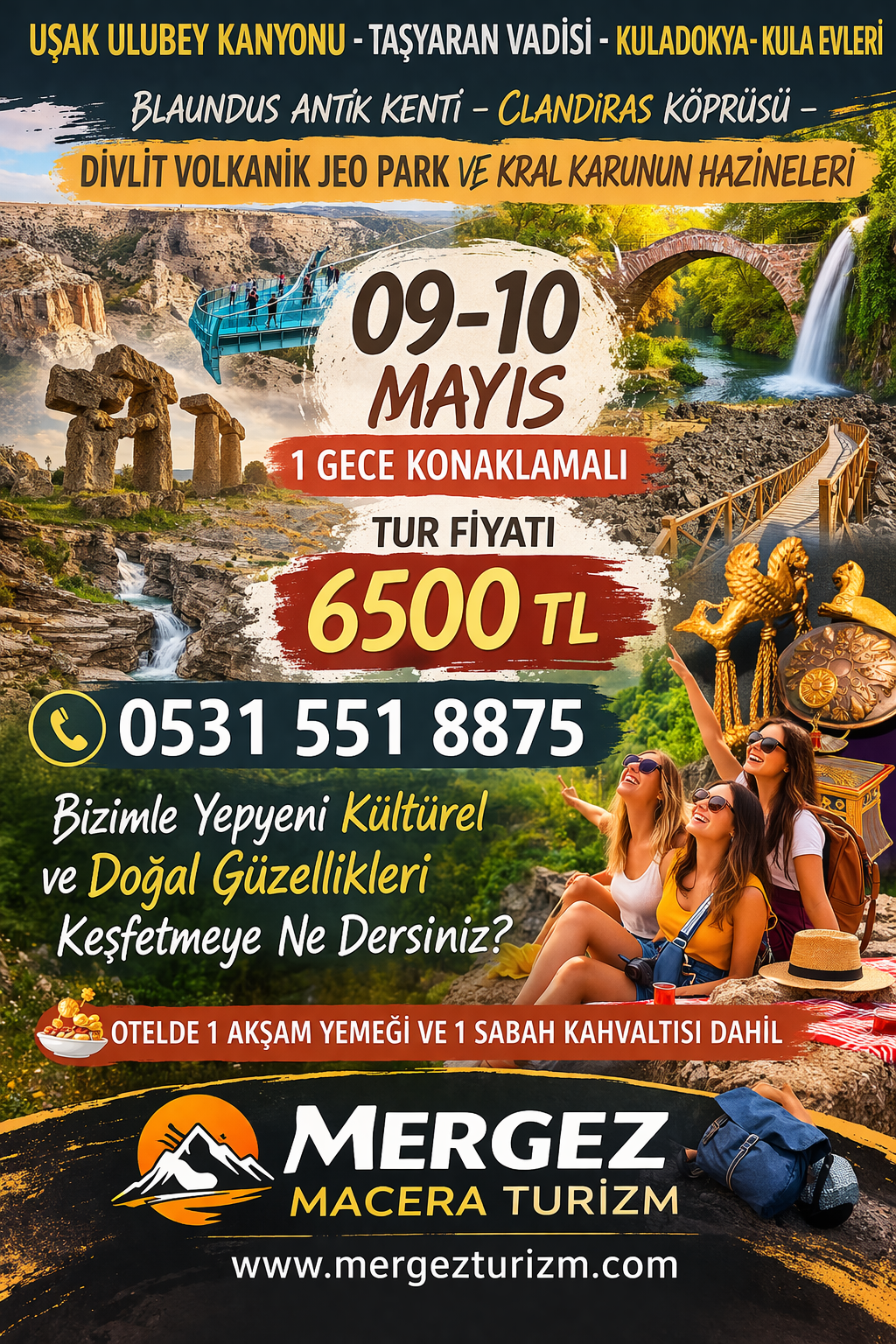 Uşak Ulubey Kanyonu-Taşyaran Vadisi-Kuladokya-Kula Evleri-Blaundus Antik Kenti-Clandiras Köprüsü- Divlit Volkanik Jeo Park Ve Kral Karunun Hazineleri Turu- MERGEZ TURİZM ÖZEL KOMBİNASYONU